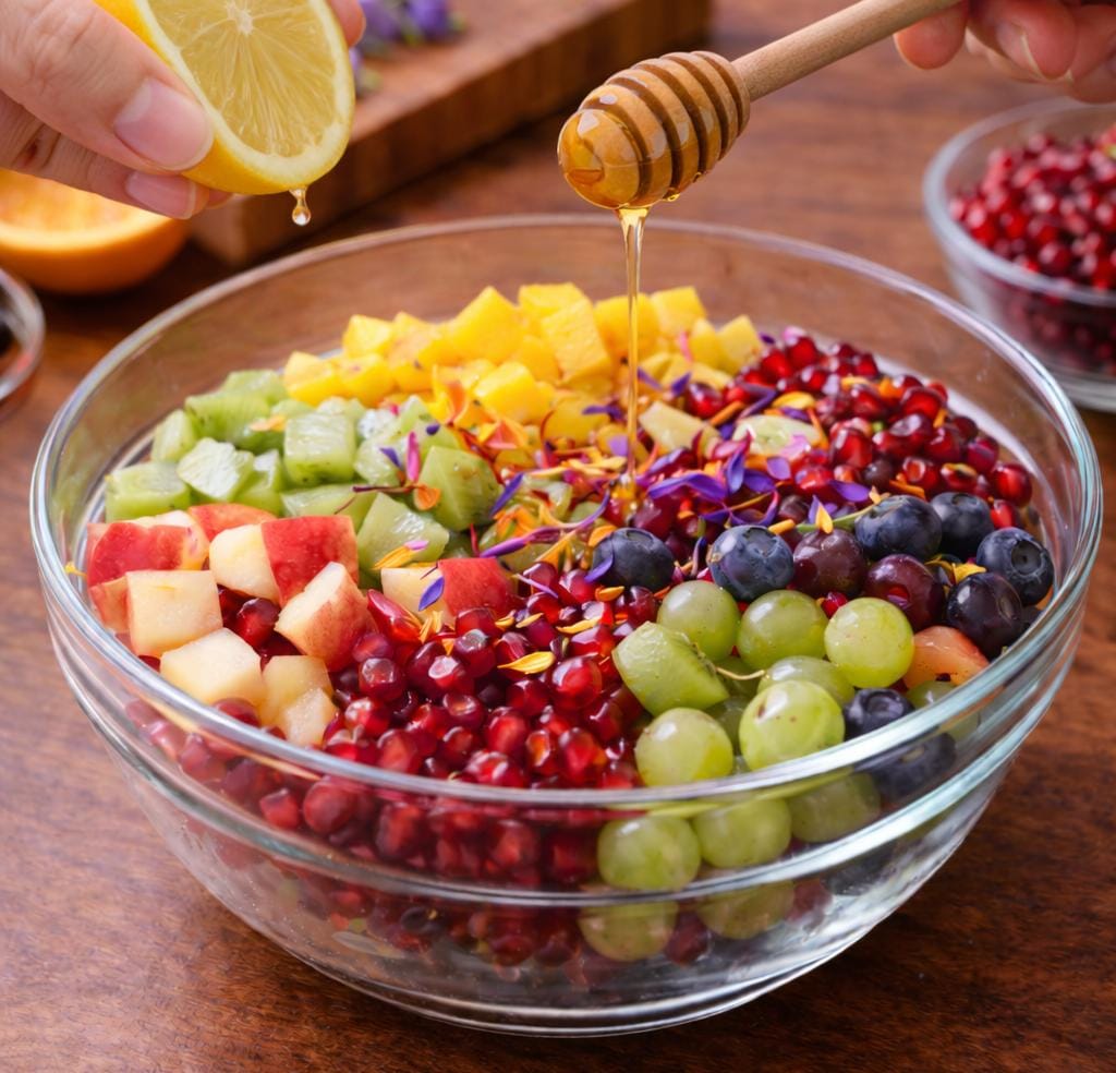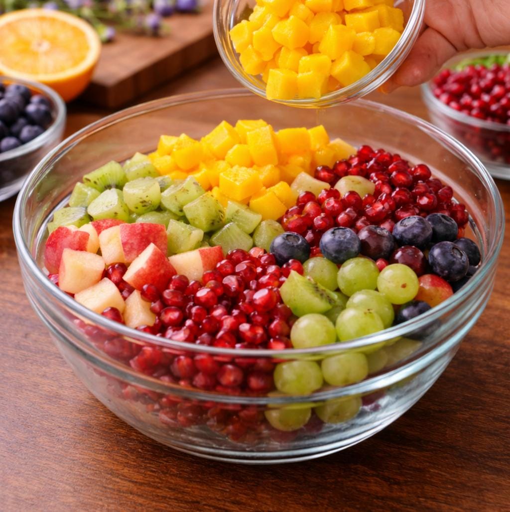 - Mixed fresh fruits (mango, apple, kiwi, grapes, pomegranate, etc.)